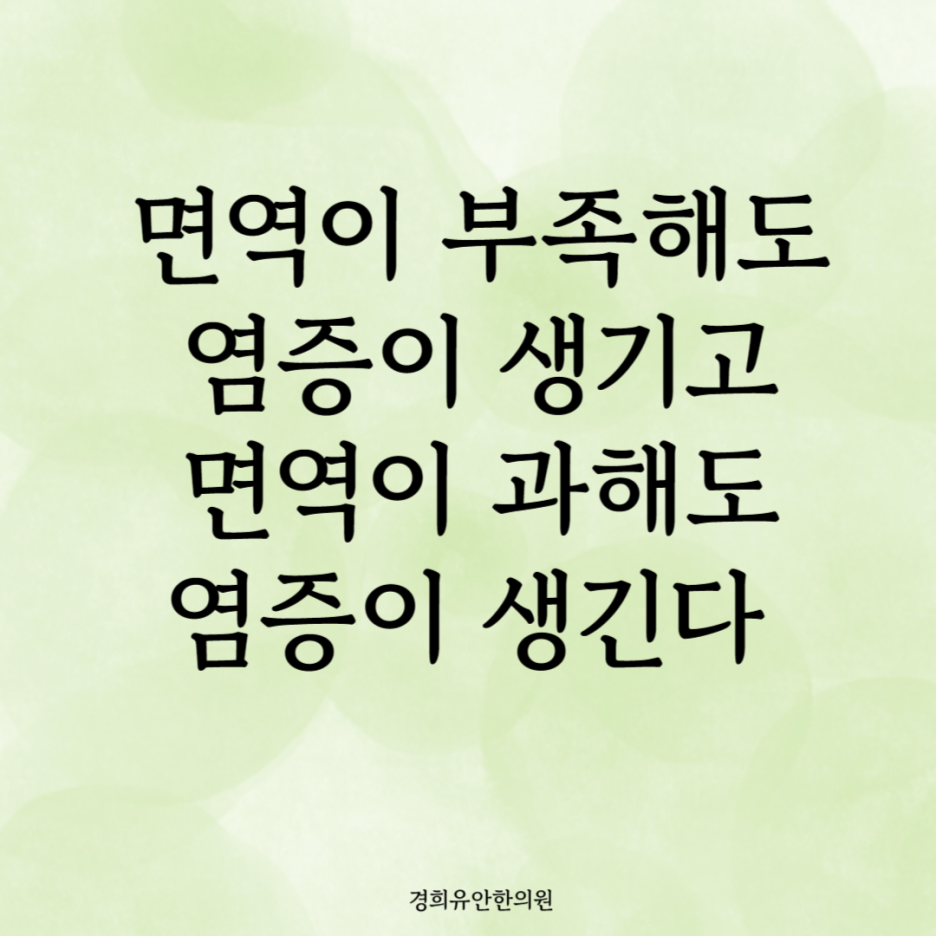 반대로 면역력이 항진되어도 염증이 생깁니다. 두 가지 상황이 있습니다.